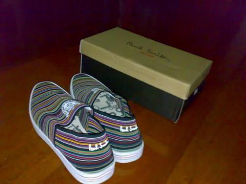 รองเท้า slip on Paul Smith หิ้วมาจาก shop ที่อังกฤษ สภาพใหม่ 100เปอร์เซ็น ยังไม่ได้ใช้งาน เป็นหนังยืด ใส่สบาย ทั้งหญิงและชาย เบอร์ประมาณ 41-44