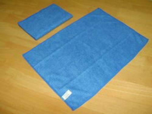 - ผ้าไมโครไฟเบอร์ผืนเล็ก ขนาด 30 x 40 ซม. ราคา 40 บ./ผืน มีสีน้ำเงิน
