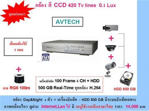 ชุดกล้องวงจรปิด ชุดประหยัด ประกอบด้วย - เครื่องบันทึกภาพกล้องวงจรปิด DVR AVTECH 791 ZA ระบบบีบไฟล์ภาพแบบ H.264 ช่วยให้ภาพละเอียด และมีขนาดเล็กลง บันทึกได้นานกว่าระบบเก่า ๆ เช่น Mpeg4� พร้อม Remote, Mouse - HDD SATAII 500 GB บันทึกได้นาน 20++ วัน(เพิ่มได้ถึง 1000 G)