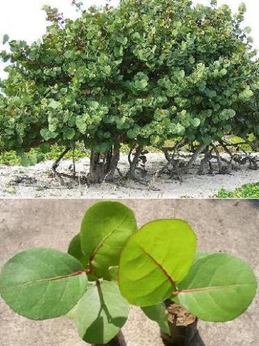 ลักษณะ ใบของต้นองุ่นทะเลนั้นแข็งเป็นพิเศษ บางต้นจะมีเส้นสีแดงผ่านบนใบ และมีทรงพุ่มเต็ม ใช้ปลูกประดับบังลมได้ดี ไม่ว่าจะเป็นบ้านพัก รีสอร์ทริมทะเล