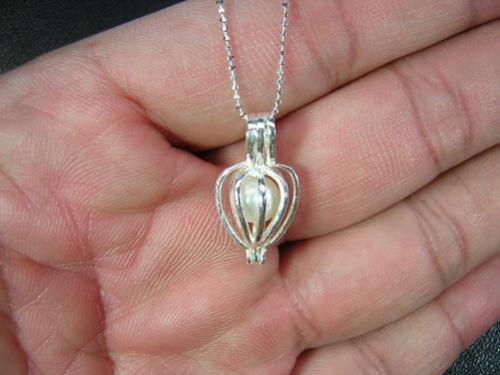 สร้อยเงินพร้อมจี้กรงนก (มีมุกน้ำจืดแทนนก)