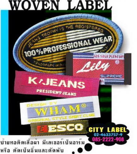 รับทำ ป้ายยี่ห้อ ป้ายทอติดเสื้อ ป้ายกระดาษ(HANGTAG) ป้ายหนังแท้ หนังเทียม ป้ายปะเกน ป้ายริ้บบิ้นพิมพ์ ป้ายซิงค์ฉีด สติกเกอร์ บาร์โค๊ต T:0852222908-024633757-9