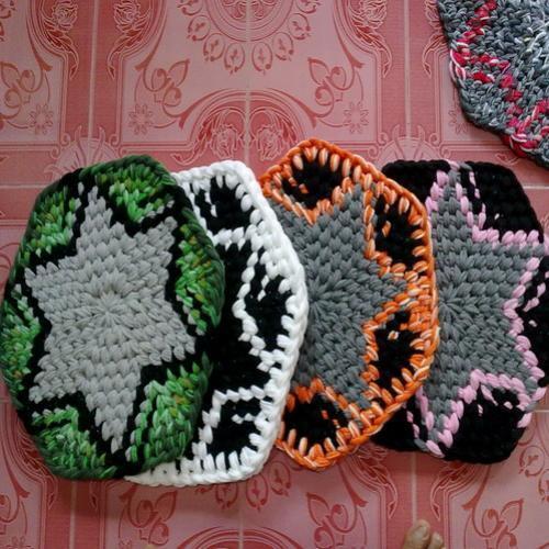 งาน Handmade ฟรีมือดี ทำมาจากวัสถุดิบคุณภาพ เป็นเศษโพลงถุงเท้า ที่ได้จากการโพลงถุงเท้า แล้วเอามาถัก เป็นพรมเช็ดเท้า หรือเอาไว้ลองนั้งก็ได้ ขายส่งอย่างเดียว ชิ้นละ 15 บาท