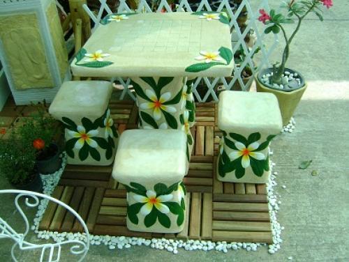 ขายของตกแต่งบ้าน และสวน จำพวก โต๊ะหินทราย แจกันดินเผา ตุ๊กตาดินเผา