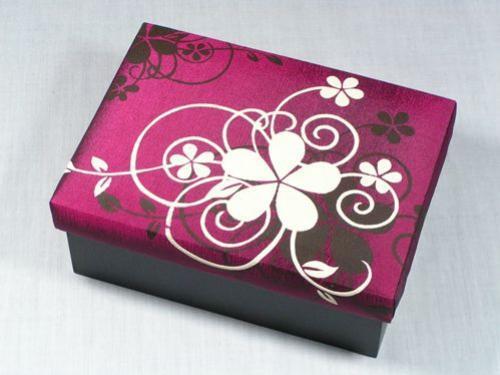 กล่องผ้าไหมทำด้วยไม้ MDF ตัวทำสีดำ ฝาหุ้มผ้าไหมเทียมสกรีนลาย