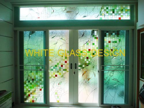 2. กระจก แกะลาย กระจก พ่นทราย กระจกสลักลายลงสี เป็นกระจกที่เหมาะกับ งานภายใน ในส่วนตกแต่ง ประตูห้องต่าง ๆ หรือจะนำ กระจก มาใส่ ในบริเวณกั้นส่วนห้อง ทำเป็นเฟี้ยม ฉากกั้น ตู้โชว์ หรือจะใส่กระจกแกะลาย กระจกพ่นทราย กระจกสลักลายลงสี ในบริเวณที่ต้องการสร้างบรรยากาศ สร้างความเป็นส่วนตัว โดยทำเป็น กระจกพ่นฝ้า ด้วยลวดลาย ต่าง ๆ แล้วแต่ รสนิยมของคนในบ้าน สร้างสีสัน ความงดงาม และความหรูหรา ได้ด้วยกระจกตบแต่ง จากไวท์กลาส ภาพลวดลายของกระจก สามารถดีไซน์ ออกแบบได้ ตามความต้องการ