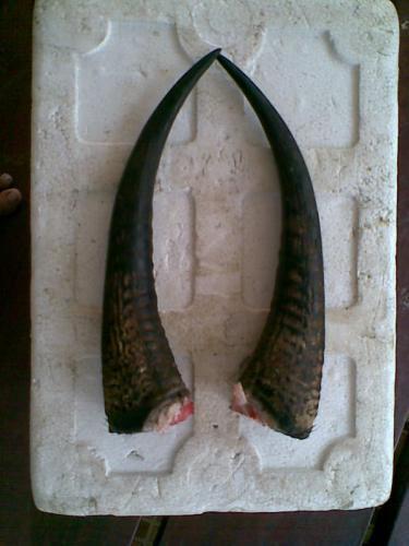 เขาเลียงผา1คู่ความยาว 21 เซนติเมตร ไว้ทำเดื่ยไก่หรือสะสมรับประกันแท้100เปอร์เซ็น