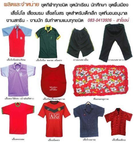 รับผลิตและจำหน่าย ชุดกีฬา ชุดนักเรียน ชุดพื้นเมือง เสื้อโปโล เสื้อกันเปื้อน อนุบาล ที่นอนอนุบาล สำหรับโรงเรียน ศูนย์เด็กเล็ก หน่วยงานอบต. เทศบาลต่างๆ ราคาขายส่ง ส่งทั่วประเทศ สอบถามราคาได้ที่ 083-0413926 สาโรจน์