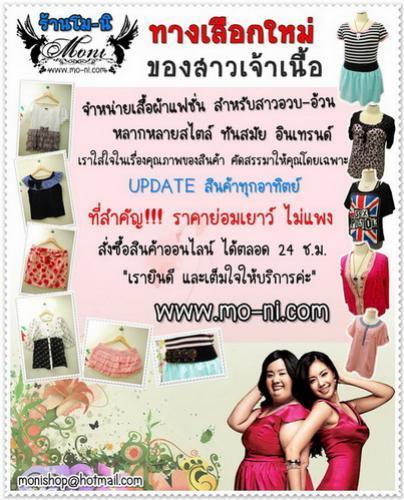 จำหน่ายเสื้อผ้าแฟชั่น ชุดเดรส ชุดเเซก กระโปรง สำหรับสาวอวบ สาวอ้วน แบบน่ารัก อินเทรนด์ ที่สำคัญราคาไม่แพงค่ะ แวะชมสินค้าเราได้ที่ www.mo-ni.com