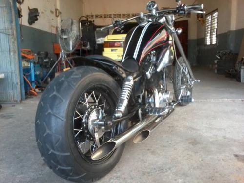 YAMAHA VIRAGO 250 CC. เปลี่ยนลูกสูบเป็นลูกสูบใหญ่ 400 CC. รถสีดำ ทำเป็นหน้ายาว