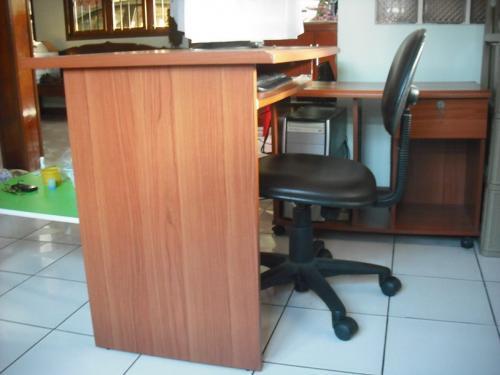ขายโต๊ะวางคอมพิวเตอร์ตัวใหญ่ขนาด 120 x 60 ซม. ตัวเล็กขนาด 80 x 40 ซม. สามารถปรับได้เป็นแนวตรงและแบบตัวแอล (ตามรูป) ขายพร้อมเก้าอี้ปรับความสูงได้ ราคาทั้งชุด 2,000 บาท อยู่ อ.เมืองราชบุรี