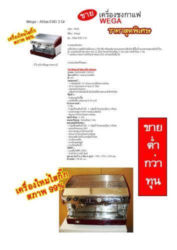 ขายเครื่องชงกาแฟแบบ 2 หัวยี่ห้อ WEGA (Atlas EVD 2Gr) สภาพใหม่ 99เปอร์เซ็น 120,000 จากราคาเต็ม 170,000 บ. พิเศษ แถมเครื่องบดเมล็ดกาแฟอย่างดี ราคา 20,000บ. และอุปกรณ์ในการชงกาแฟอื่นๆ
