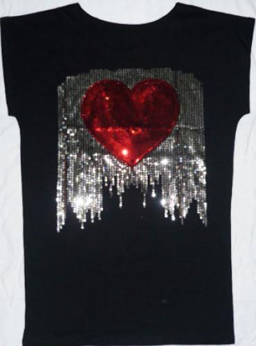 เสื้อยืด เนื้อดี ตัวยาว ปักเลื่อมลายหัวใจ ที่หน้าอก