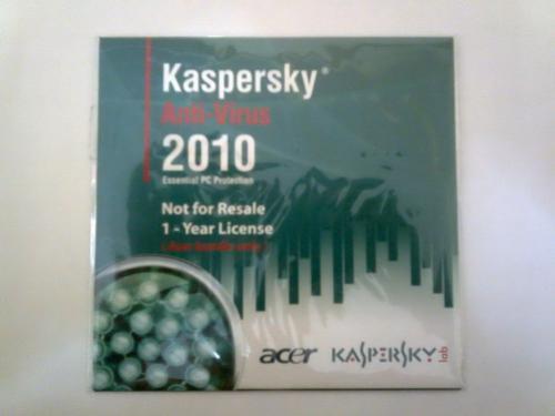 kaspersky anti-virus 2010 ตัวนี้เป็นตัวแถม notebook acer license1 ปี ขายแผ่นละ 130 บาท รับสินค้าได้ 2 วิธื คือ ส่งทางไปรษณีย์ ems หรือ ส่งทาง sms เพราะว่าในซองจะมีแค่ serial number เพื่อที่จะนำไปขอ activate code ในเว็บไซต์อีกที