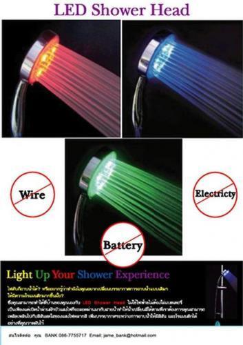 เพียงแค่เปิดน้ำผ่านฝักบัวแสงไฟก็จะลอดผ่านออกมากับสายน้ำทำให้น้ำเปลี่ยนสีได้ตามที่เราต้องการ