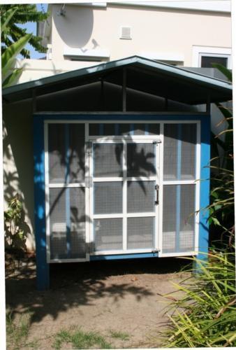 ลักษณะ ของบ้านสุนัข ทำจากไม้อย่างดีกันแดดกันฝนอย่างดี พร้อมหลังคาอลูมิเนียมกันความร้อน ประตูบ้านหน้าพร้อมกลอนล๊อต พร้อมมุ้งลวดตาขาย ด้านในมีสองชั้น มีบันได ปูพื้นด้วยยิมซั่มทำให้พื้นเย็น และสามารถฉีดน้ำทำความสะอาดได้สะดวก
