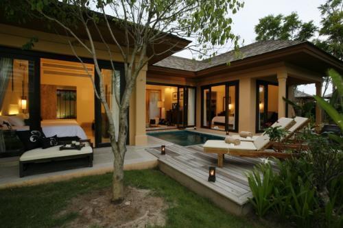Set amidst a tropical garden, these villas offer two bedrooms, one living room, two bathrooms with separate indoor shower and bathtub, twin vanity units, an exotic outdoor garden rainshower and private plunge pool.