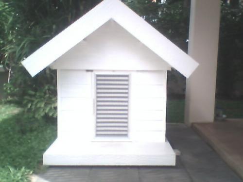 ลักษณะบ้านสุนัข สามารถทนแดด ลม ฝน ได้ดีเยี่ยม มีประตูและหน้าต่างระบายอากาศ 3 ทิศทาง