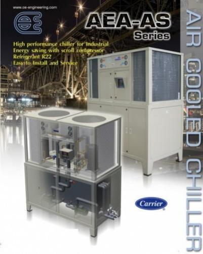เครื่อง Chiller Aircooled , Watercooled แบบประหยัดพลังงาน สำหรับใช้ในระบบทำน้ำเย็น ระบบปรับอากาศ ในอาคาร ในโรงแรม โรงงานพลาสติก งานในโรงงานอุตสาหกรรมต่างๆ เช่น แช่เย็น แช่แข็ง หล่อเย็น ระบายความร้อน ทำน้ำเย็น ทำลมเย็น เป็นต้น ขนาดตั้งแต่ เครื่องเล็ก 3 ตัน จนถึงเครื่องใหญ่ มากกว่า 200 ตันขึ้นไป