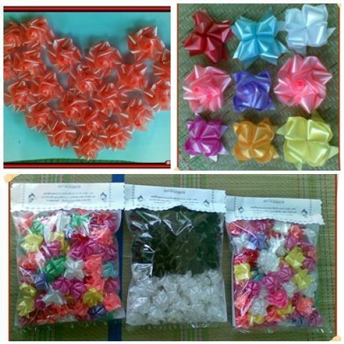 รับสั่งทำดอกไม้โปรยทาน สำหรับงานบวช งานกฐิน งานศพ ทำจากริบบิ้นสีต่าง ๆ เพื่อใช้เหมาะกับงาน มีหลายแบบ เช่น ดอกกุหลาบ ดอกบัว ดอกลีลาวดี ดอกพุท ฯลฯ