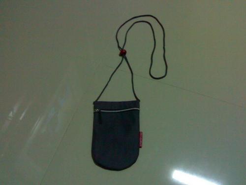 กระเป๋าสะพายขนาดเล็กทำจากผ้ากันน้ำ มีปุ่มปรับความสั้นยาวของสายได้ มีซิปด้านหน้า มือจับรูดซิปทำจากยางอย่างดี คงทน เปียกน้ำได้ เหมาะใส่เงิน โทรศัพท์ พาสปอร์ต