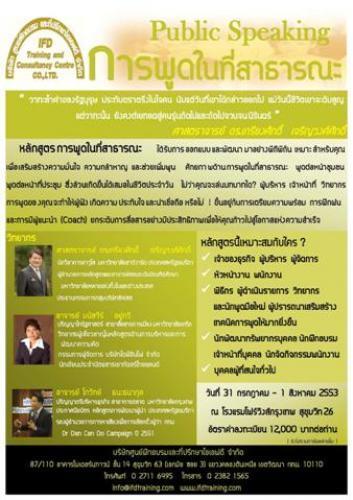 หลักสูตรฝึกอบรมการพูดในที่สาธารณะ Public Speaking ( 31 ก.ค. - 1 ส.ค. )