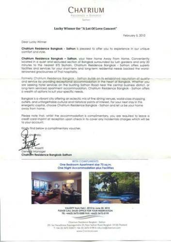 ขาย Voucher Chatrium Residence Bangkok, Sathon 1 คืน + facilities ราคาจริง 1,999 ++ ขาย 1,000 บาท เพราะไม่มีเวลาจะไป ถูกมาก ห้องสวยจริงๆค่ะ พัก 1 คืน พร้อม facilities Voucher หมดอายุ 30 มิถุนายน 2553 ใครมาก่อนได้ก่อน ถูกใจอยากได้ต่อรองราคาได้อีก อยากลด จริงอยากไปแต่ไม่มีเวลา