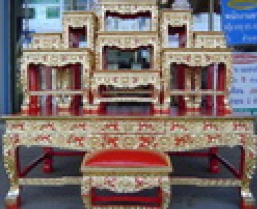 โต๊ะหมู่บูชา ธรรมมาศ บุษบก ตู้พระไตร ตู้พัดยศ ชุดแต่งงาน ทั้งงานปิดทอง และประดับมุก