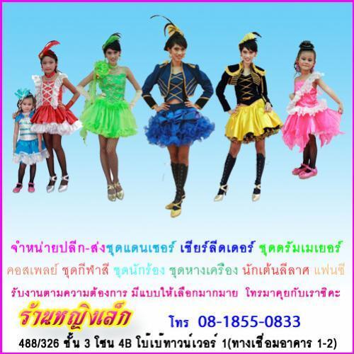 จำหน่ายปลีก-ส่งชุดแดนเซอร์ เชียร์ลีดเดอร์ ชุดดรัมเมเยอร์ คอสเพลย์ ชุดกีฬาสี ชุดนักร้อง ชุดหางเครื่อง นักเต้นลีลาศ แฟนซี รับงานตามความต้องการ มีแบบให้เลือกมากมาย โทรมาคุยกับเราซิคะ