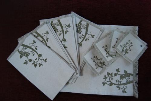 ขายชุดผ้ารองจาน และ แก้ว ยี่ห้อ pimdesign ประกอบด้วย ผ้ารองจาน 4 ชิ้น ผ้ารองแก้ว 4 ชิ้น และ ผ้าวางกลางโต๊ะ 1 ชิ้น Handmade ด้วยผ้าเนื่้อดี พร้อมลวดลายสวยงาม