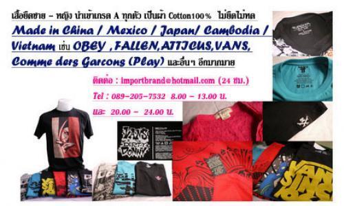 importbrand จำหน่ายเสื้อยืดนำเข้า เกรดA ทั้ง ชาย - หญิง ราคาไม่แพง เนื้อผ้าดี เป็น Cotton 100เปอร์เซ็น ทุกตัว ใส่สบายไม่ยืดไม่หด มีทั้ง made in china / Mexico / Japan / Cambodia/ Vietnam เช่น เสื้อ OBEY , Fallen , VANS , ATTICUS , Comme ders Garcons (Play) และสินค้าแฟชั่นอื่นๆ อีกมากมาย� � ดูรายละเอียดเพิ่มเติมได้ที่ www.importbrand.weloveshopping.com� หรือ www.importbrand.pantown.com � � �