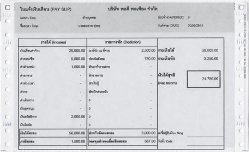 หจก.เซ็นท์ สเต็ป---จำหนายแบบฟอร์ม สลิปเงินเดือน Pay Slip คาร์บอน 3 ชั้น เนื้อกระดาษอย่างดี ใช้ได้กับทุกบริษัท เริ่มต้นเพียงชุดละ 2 บาทเท่านั้น !