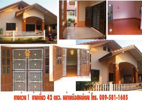 บ้านเดี่ยว ชั้นเดียว 42 ตรว . 2 ห้องนอน 2 ห้องน้ำ 1 โรงจอดรถ ครัวในบ้าน และครัวนอกบ้าน