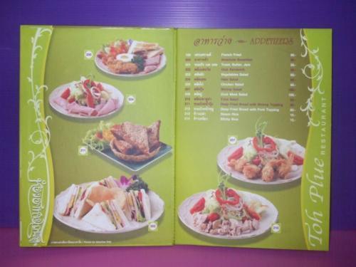 รับบริการ @ พิมพ์เมนูอาหาร ด้วยกระดาษที่มีความหนา เคลือบกันน้ำอย่างดี เข้าเล่มสวยงาม ทั้งปกแข็ง ปกอ่อน แบบแผ่นพับ 2 พับ, 3 พับ ไซน์ A3 A4 A5 หรือตามแบบที่ลูกค้าต้องการ