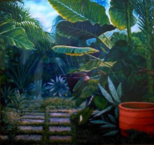 ภาพทิวทัศน์ในสวนโทนเขียวๆ วาดด้วยสีอะครายลิค ขนาดกว้าง100ซม ยาว100ซม ดูสบายตา สําหรับผู้ชื่นชอบธรรมชาติ และเหมาะอย่างยิ่งสําหรับตกแต่งในบ้านหรือคอนโดของท่าน ราคา10,000บาท ลดเหลือเพียง7000บาท