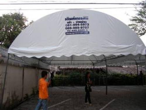 - เต็นท์ทรงโค้งสีขาวขนาดหน้ากว้าง 18 เมตร ต่อความยาวได้ช่วงละ 6 เมตร (ความยาวตามต้องการ)
