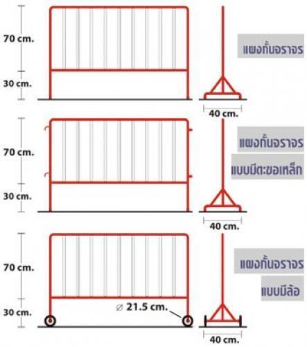 แผงกั้นจราจรเหล็ก ขาว-แดง ขนาด 1 เมตร มีล้อ