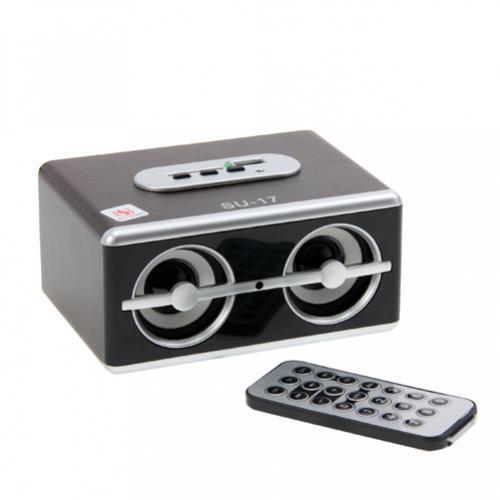 ลำโพงขนาดเล็ก ดีไซน์หรู มีเเบตเตอร์รี่ในตัว พร้อมรีโมทควบคุมการใช้งาน ใช้กับ sd card flash dive