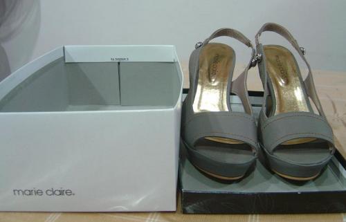 รองเท้าส้นสูง ยี่ห้อ MARIE CLAIRE ที่ขายในร้านบาจา สีเทา แบบรัดส้น เบอร์ 4 (ไซส์ประมาณ 37-38) ใส่สบายนะคะ เพราะเสริมพื้นด้านหน้าด้วย ใส่เพียงแค่ครั้งเดียวเองค่ะ พร้อมกล่องด้วยนะคะ