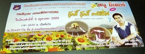 ใครสนใจบัตรคอนเสิรต์ หนูมิเตอร์พร้อมชมสุดยอดกายกรรม กู๊ดดี้ กู๊ดดี้ แฟลมิลี่โชว์บ้าง การแสดงกายกรรม บนฝ่าเท้าจากประเทศฟิลิปปินส์ ครับเป็นงานการกุศลแสดงในวันที่ 2 ตุลาคม 2553 งานเริ่มเวลา 19.00 น. ณ.ห้องเอราวัณ โรงแรมเชียงใหม่ภูคำ บัตรราคา 1,000 บาท พร้อมอาหารว่าง ครับ (ผมมี 3 ใบ ครับขายเหมาไปเลย 2,000 บาทครับ ใครสนใจติดต่อมาได้เลยนะครับ 089-962-3591)