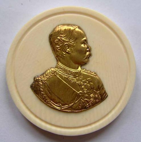 เหรียญรัชกาลที่ 5 คชสารหมื่นปี หลวงพ่ออุตตะมะ หน้าทองคำ สภาพสวย