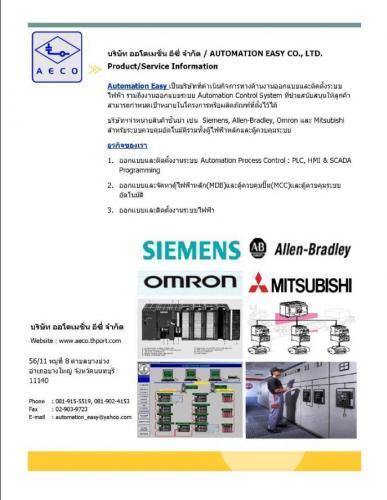 Automation Easy เป็นบริษัทที่ดำเนินกิจการทางด้านงานออกแบบและติดตั้งระบบไฟฟ้า รวมถึงงานออกแบบระบบ Automation Control System ที่ช่วยสนับสนุนให้ลูกค้าสามารถกำหนดเป้าหมายในโครงการหรือผลิตภัณฑ์ที่ตั้ง ไว้ได้