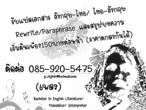 แปลอังกฤษ-ไทย ราคาเริ่มต้นที่ 150 บาทต่อหน้า (สามารถตกลงกันได้)