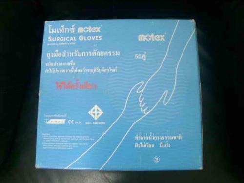 ขายส่งถุงมือแพทย์ชนิดผ่าตัด ยี่ห้อ โมเท็กซ์ ทุกเบอร์ ตั้งแต่เบอร์ 6,6.5,7,7.5และ8นิ้ว เป็นของใหม่ ราคา 600 บาทถ้าซื้อเป็นจำนวนมากลดได้อีกครับ 084-6778548