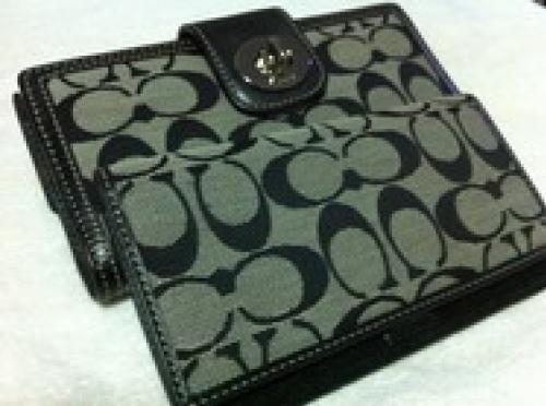 ขาย กระเป๋าสตางค์ coach signature turnlock black checkbook wallet ของแท้ ล้านเปอร์เซ็น