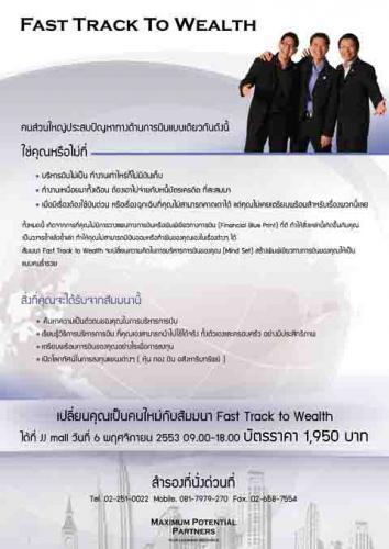 สัมมนา Fast Track to Wealth จะเปลี่ยนความคิดในการบริหารการเงินของคุณ (Mind Set) สร้างพิมพ์เขียวทางการเงินของคุณให้เป็นแบบคนที่ร่ำรวย