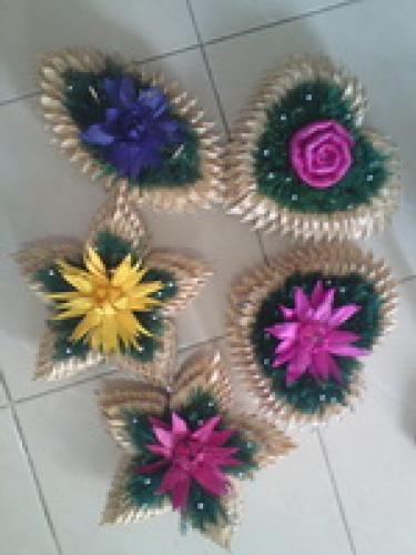 ฐานของกระทงทำจากกาบมะพร้าว กลีบทำจากเปลือกข้าวโพด ตกแต่งด้วยหญ้าแห้งซุบสี และ มีธูปเทียนให้พร้อม สามารถติดต่อได้ตั้งแต่วันนี้