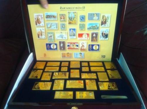 ขาย stamp ทองชุดครองราชย์ 50 ปี มีเพียง 9,999 ชุดเท่านั้น หายากมาก ใส่กล่องไม้โอ๊กพร้อมกุญแจล๊อค