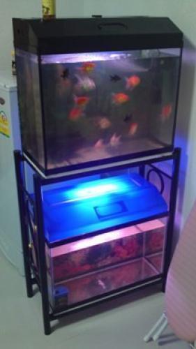 ขายตู้ปลา 24 นิ้ว 2 ตู้ +หมอสี+ ฝาไฟ ดำ/น้ำเงิน + ขาตั้งตัว S + ปั๊มน้ำ + ออกซ์