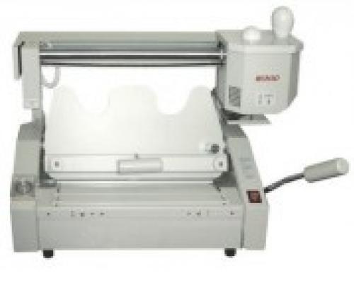 เป็นเครื่องเข้าเล่มสันกาวแบบกาวเม็ด ใช้งานง่ายสะดวกรวดเร็ว ไม่ยุ่งยาก